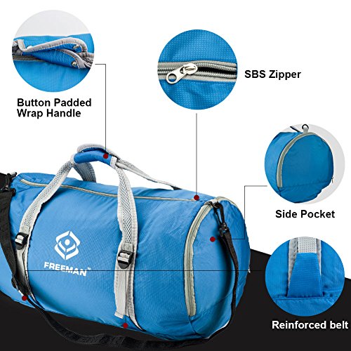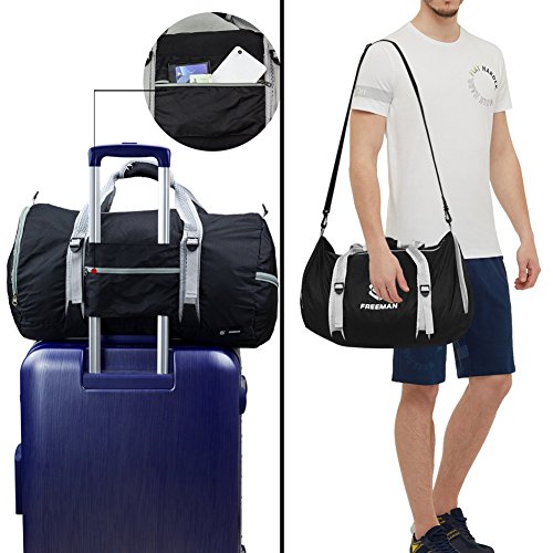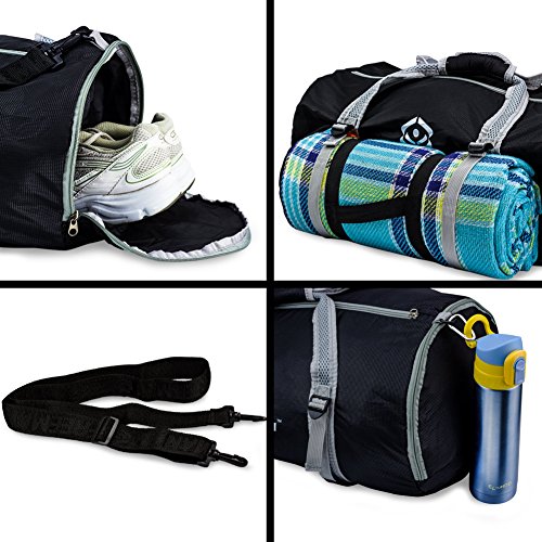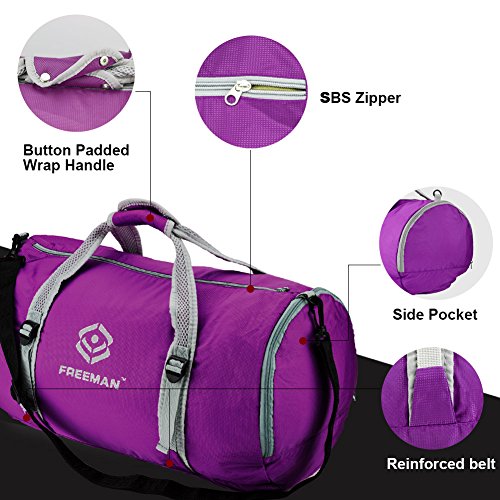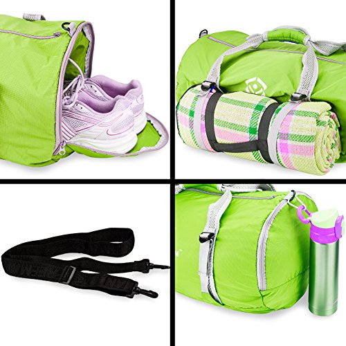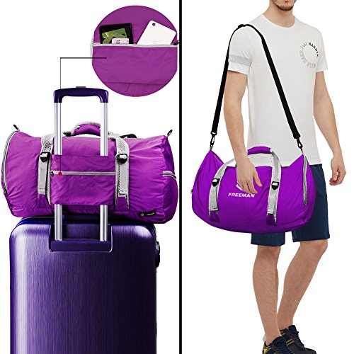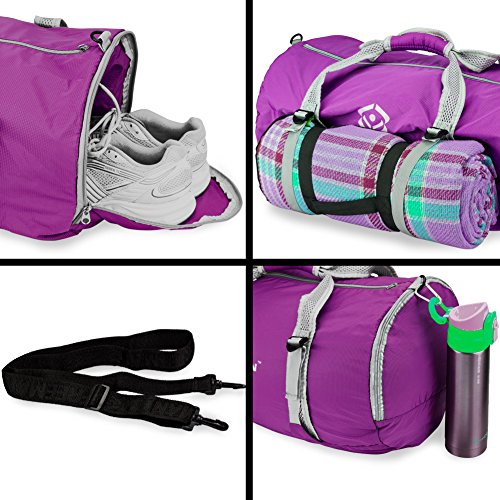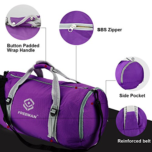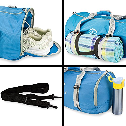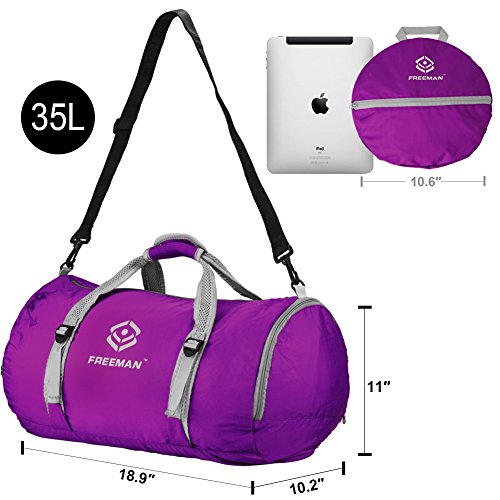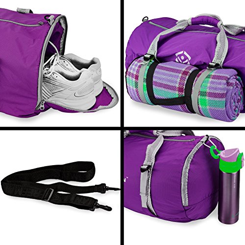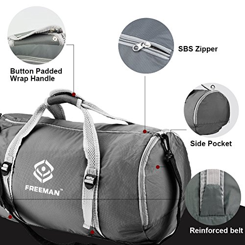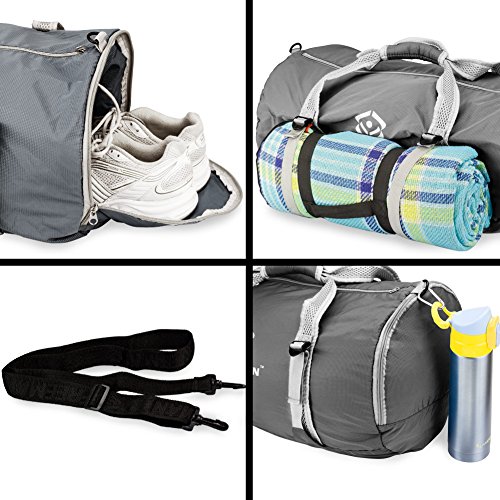 The foldable duffel bag with shoe compartment gives you all the space you need without the added size or weight.Durable and compact, you can pack it full of clothes,supplies,and more,and then fold it into an own pouch for easy storage.With durable nylon handles and high-quality metal zippers,the foldable duffel is prefect for daytrips or your dream vacation. Special Design - Made of polyester memory fiber