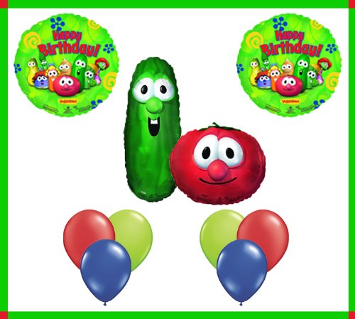 -. Feature : Large Bob the Tomato & Larry the Cucumber shaped foil balloon / Two 18" Veggietales "Happy Birthday" foil balloons / Six 11" Latex Balloons (two of each color)