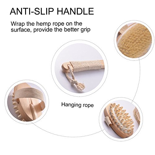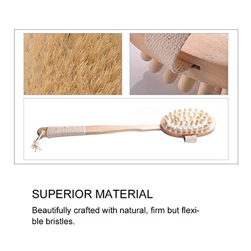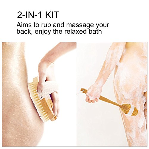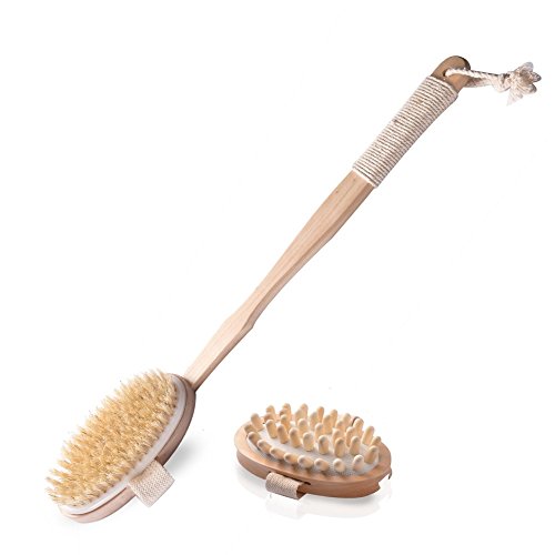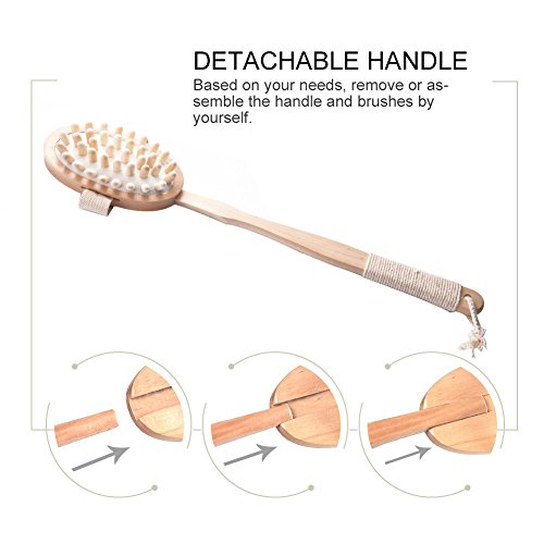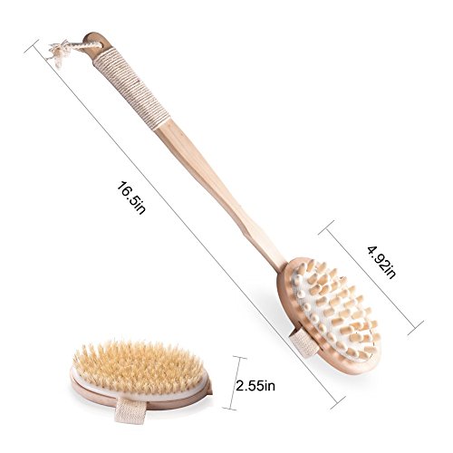 Pretty See Bath Body Brush 2-in-1 Detachable Body Massager Natural Boar Bristle Bamboo Back Scrubber with Long Handle