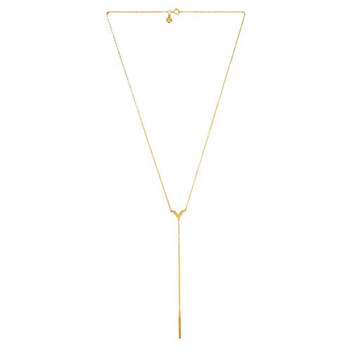 Slender necklace featuring engraved V-shape charm and Y chain with bar pendant
