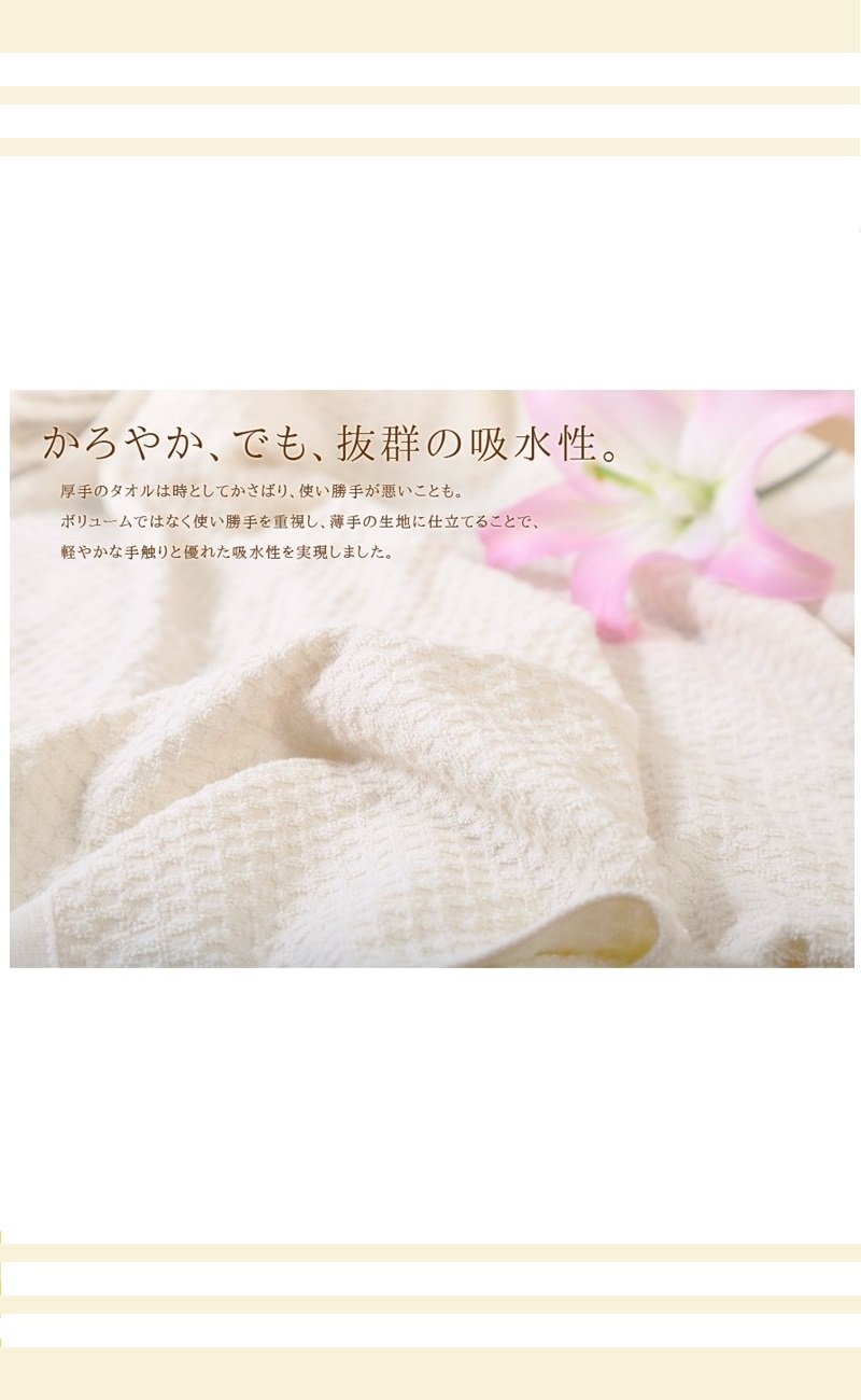 From such a thought, I kept high quality and safety, I made towels stuck with daily use.