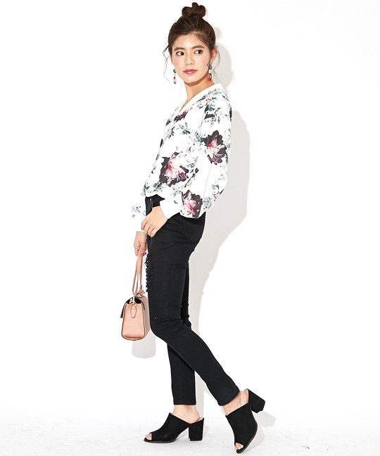 .落ち着いた色合いの柄を使用しているので、花柄でも主張が激しくなくコーデに取り入れやすいのがポイントです。