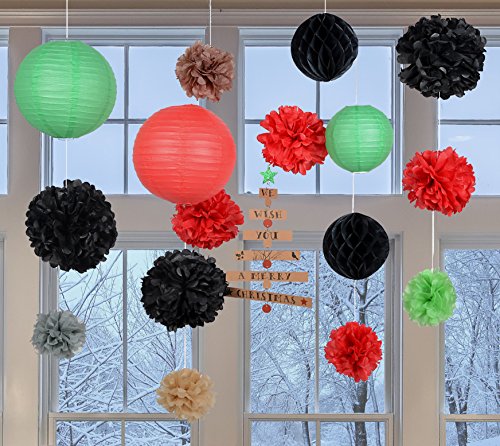 PAPER JAZZ 17PCS Christmas party home holiday decoration pom pom lantern hanging decoration kit