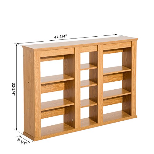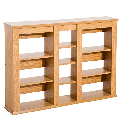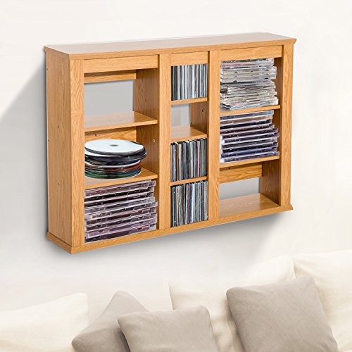 Studio : Overstock Publisher : Overstock Product Description Showcase your film and music collection with this storage shelf. Wall-mountable for eye-level browsing, the floating rack features 10 shelves to organize DVDs and CDs and a reinforced back for supportive strength.Features:Finish: WoodMaterials: High-quality particle boardNumber of shelves: 10Weight capacity: 33 poundsStorage type: DVDs, CDs, booksFeatures: Reinforced back, wall-mountable, smooth surfaceWeighs: 56.6 poundsDimensions: 32.75 inches high x 47.25 inches wide x 8.25 inches deepAssembly Required 0