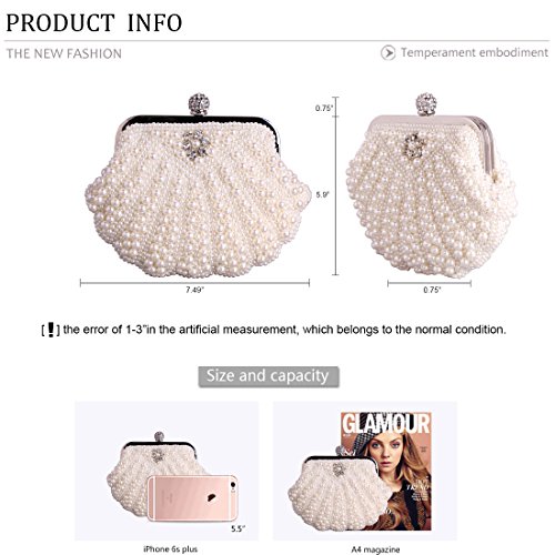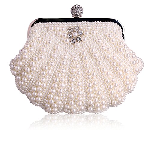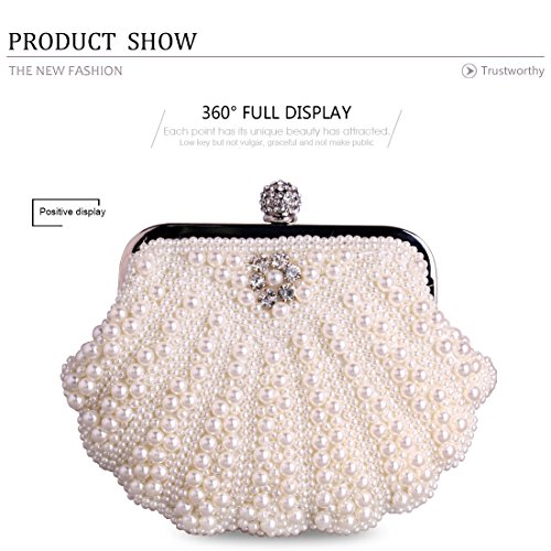 -. Title : HMaking Womens Shell Pearl Wallet Rhinestone Clasp Evening Clutch Fashion Handmade Purse