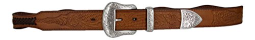 -. Binding : Apparel -. Brand : Belts.com -. Department : mens -. Feature : Real leather hand-woven into an x pattern. / Engraved star conchos complimenting the leather and buckle set design. / Western pattern embossed on genuine cowhide leather / Silver-finish Engraved Matching 3 piece buckle set. / 1-1/2" Wide with our easy Snap System to Interchange your favorite Western Buckles. -. ProductGroup : Apparel -. ProductTypeName : ACCESSORY -. Title : Mens Western Ranger Star Badge Concho Braided Genuine Leather Cowboy Belt
