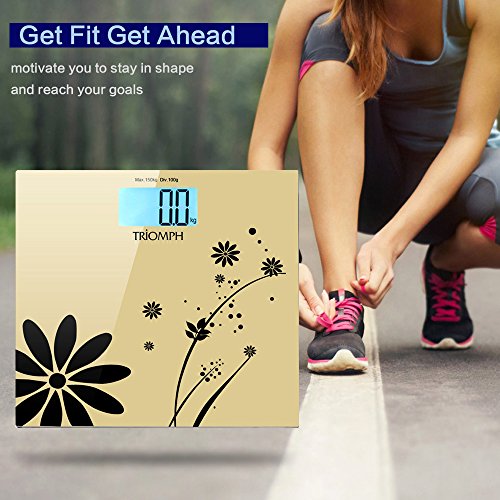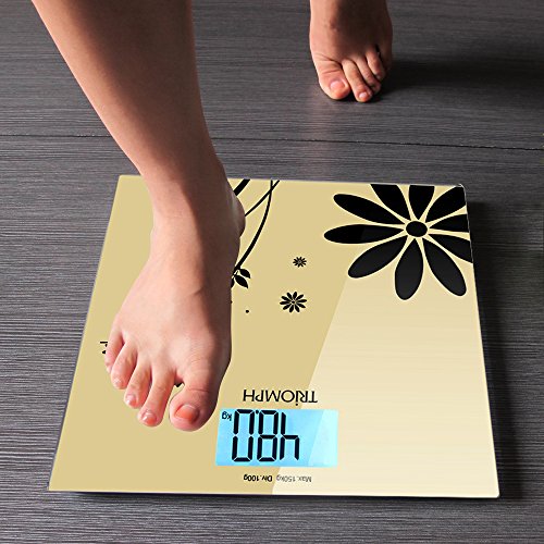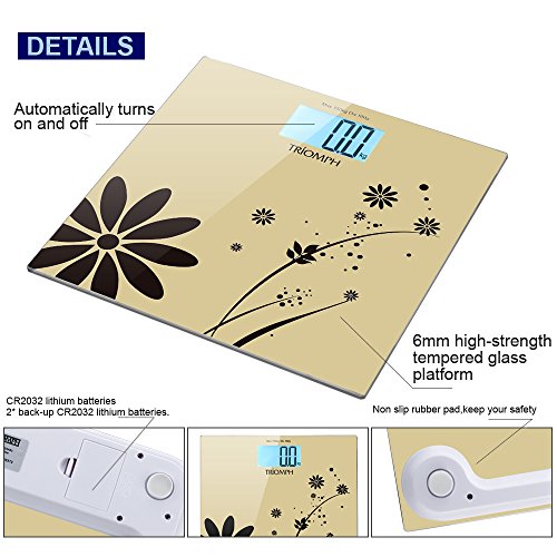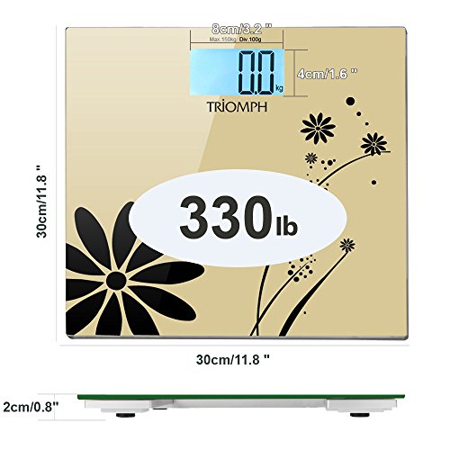 -. Title : Triomph Digital Bathroom Weight Scale, 330lb Capacity, Automatic Step On, LCD Backlight Display, 6mm Tempered Glass (Golden)