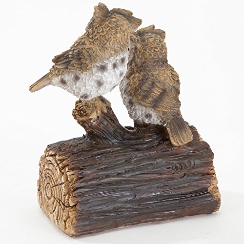 Sculpted of hand painted poly resin with sophisticated details our pair of owls perch on a log with remarkable realism.