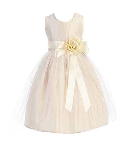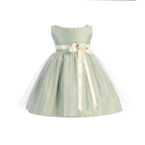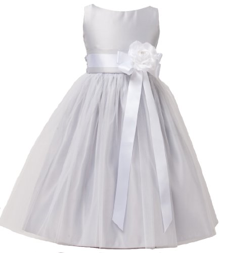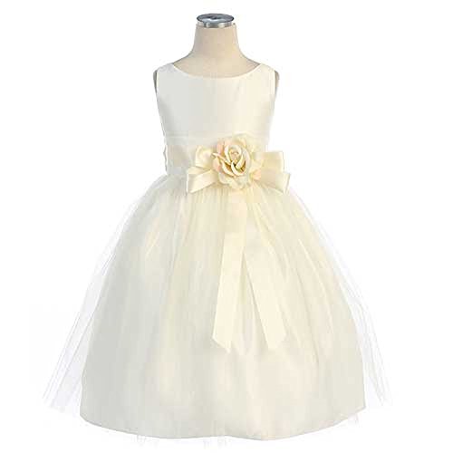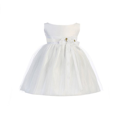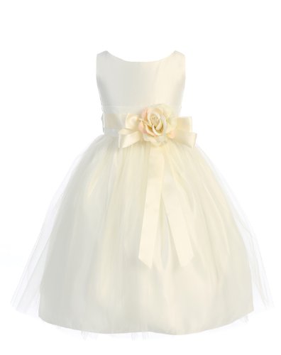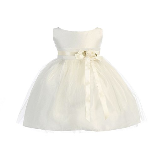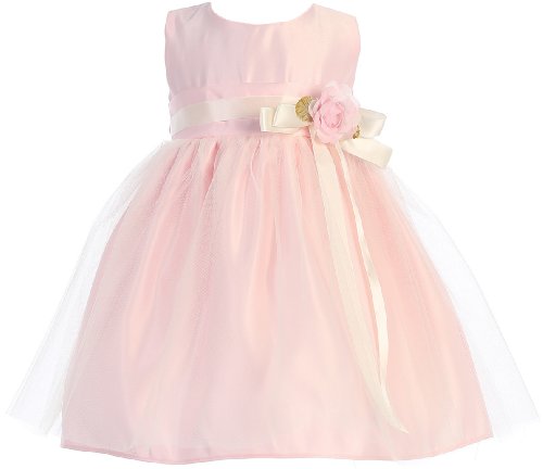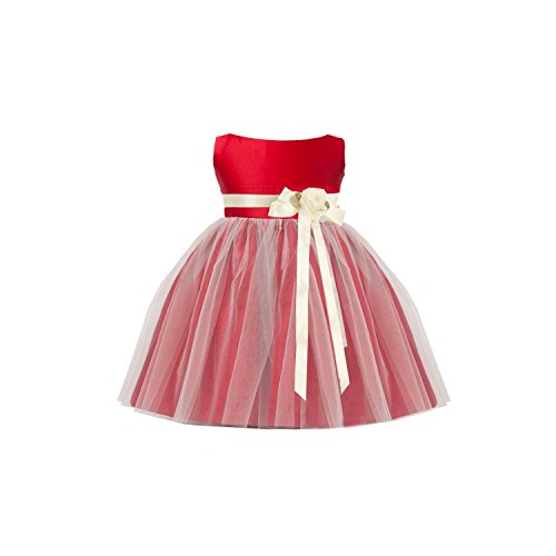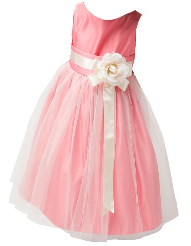 Vintage Satin & Tulle Special Occasion Sleeveless Tea Length Dress. Infant Toddler Little Girl's Dress. See Coral Infant for picture of Self-Tie Sash on Back. Zipper Back. 100% Polyester Vintage Satin & Tulle. Hand Wash. Made in the USA.
