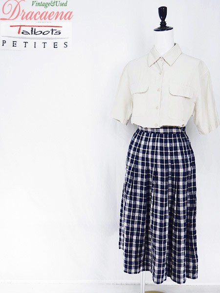 Ladies ブランドTalbots タルボット カラー紺・アイボリー メール便不可 コンディション★★★ 素材リネン 表記サイズ8 スタッフコメント裏地なし。素材全体に小さい糸の出があります(着用には問題ありません)。 実寸サイズ 着丈 75 cm ウエスト 27.5 インチ( 70 cm) ※ウエスト・ヒップ以外は平置き採寸