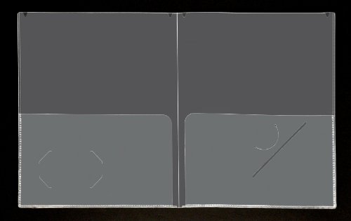 -. Feature : 2 clear inside pockets / Continuous outside view cover pocket (11"x17") / With business card slit & CD slot / Letter size / Recyclable polypropylene material / Overall Dimension: 9.5"W x 11.5"H / Clear