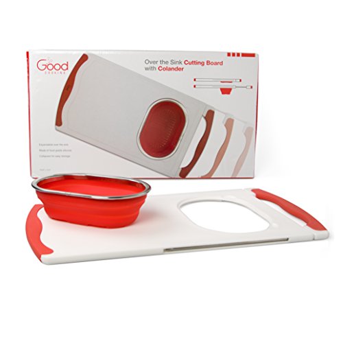 Includes removable silicone colander with stainless steel rim- chop and rinse