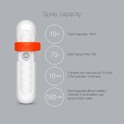 - Large capacity & rechargeable lithium battery -- 150mAH battery capacity which can be used for 8 tanks of water after full charging. A tank holds 10ml of water which works for 8 misting sessions and each session lasts 70 seconds.
