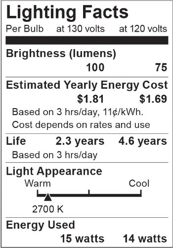 - Saco Incandescent Lamp A15, 15 Watt, 130 Volt, Medium Base, Frost, 2,500 Average Rated Hours, 2 Per Box - 2474150