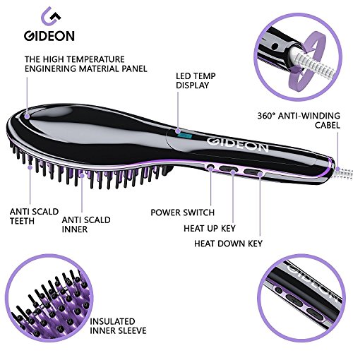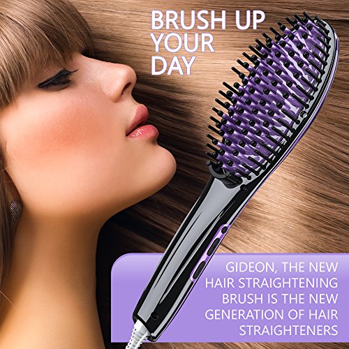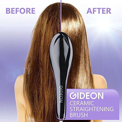 Gideon Professional Ceramic Heated Hair Brush Straightener Iron - Amazing Hair Straightener / Professional Quality Straight Hair in Minutes [UPGRADED]