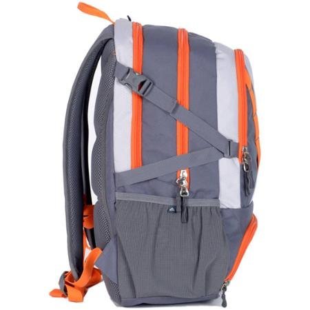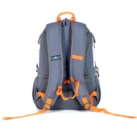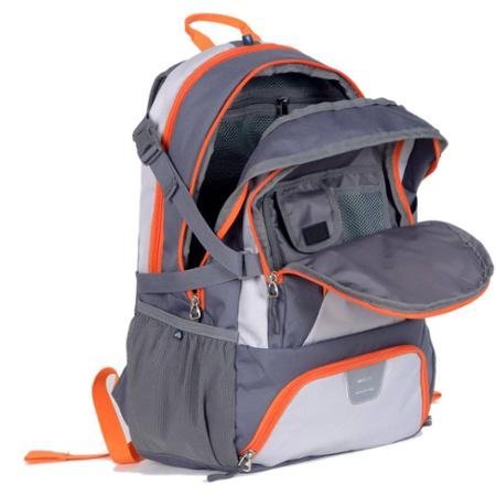 -. Feature : 35-liter capacity/ Heavy-duty ripstop material/ Made of 90 percent polyester, 5 percent ABS and 5 percent metal / Thermal-insulated pocket to keep your food and drinks fresh/ Hydration-compatible/ Hand wash only / Multiple storage compartments for added gear storage and organization/ Fleece-lined sunglasses pocket/ 2 water bottle pockets / Compression straps to help stabilize the load and minimize the pack profile/ Interior storage sleeve securely holds a hydration reservoir, laptop or tablet/ Air-mesh padded shoulder straps and back panel for extra comfort / Airflow back panel system/ Adjustable sternum straps for added support/ Color: gray/black/orange Ozark backpack