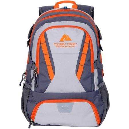 -. Title : Ozark Trail 35L Choteau Heavy-duty Ripstop Material, Hydration-compatible, Multiple Storage Compartment, Daypack Backpack with 2 Water Bottle Pockets- Gray/Orange
