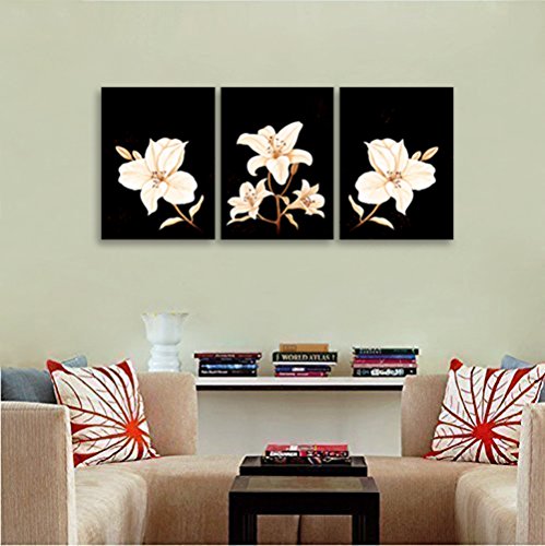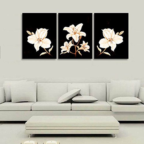 -. Title : Sweety Decor Modern Canvas P.R.Ints of Beautiful Flower Picture Oil Paintings for Home and Office Wall Decor 3pcs/set (Wood Framed)