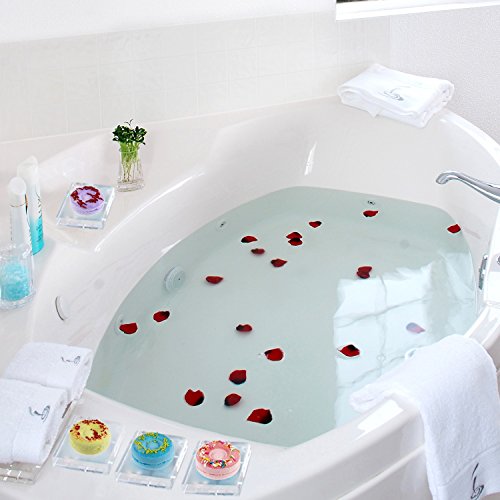 Q:What are the benefits of bath bombs? A:Shea butter,Essential oils and Deep Sea Mud etc natural ingredients are added in these bath bombs,they turn your tub water into a healthy soak that will help relieve aches and pains,ease muscle discomfort and hydrate the skin.Let you eaperience all the pleasures of a SPA treatment at home.Four colors correspond to four various fragrances.Just enjoy much more variety every day!In addition,donut shape and explosive effect make the bath bomb like an attractive bath toy,kids will enjoy bath time unlike ever before!