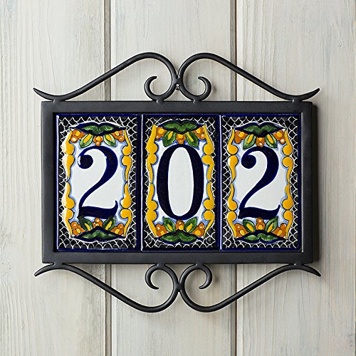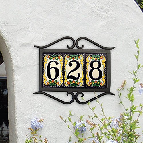 -. Feature : Handmade from wrought iron and powder coated for durability / Dimensions: 11.75" wide, 10.25" tall / Fits 3 Native Trails 3" x 5" Address Tiles / Address number tiles sold separately / Mounting hardware and tile adhesive not included