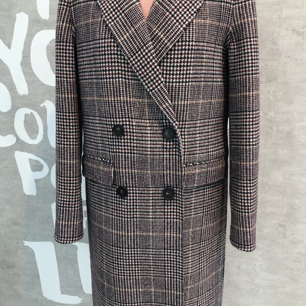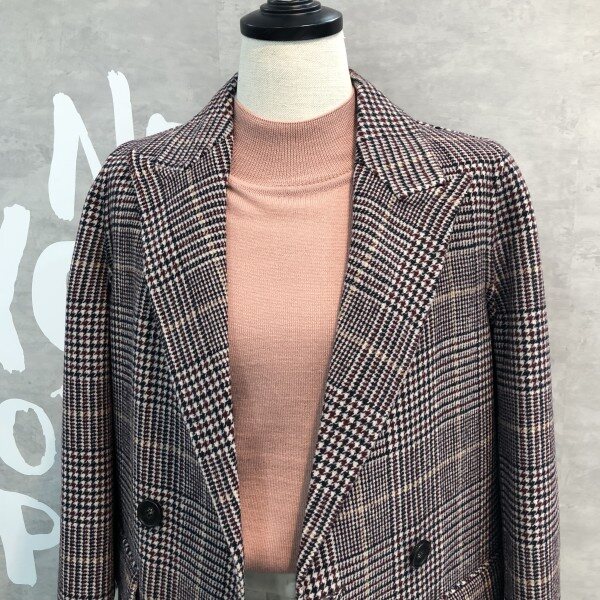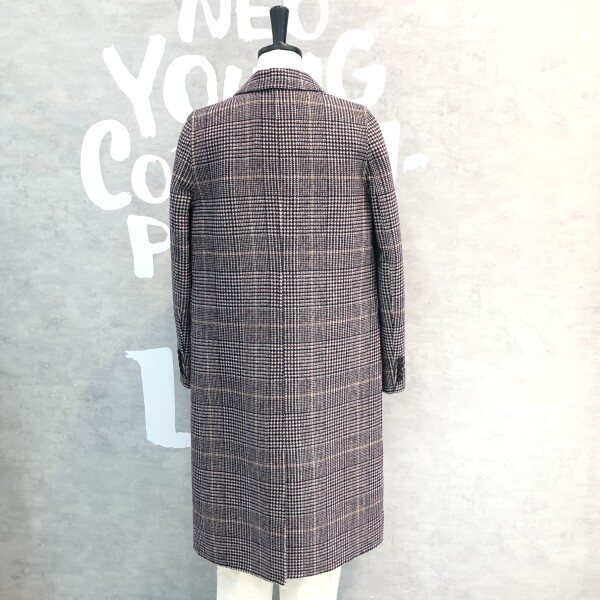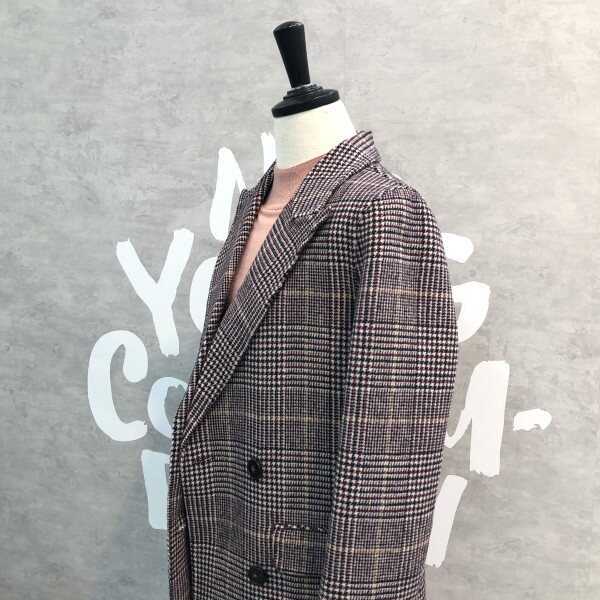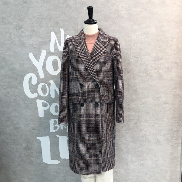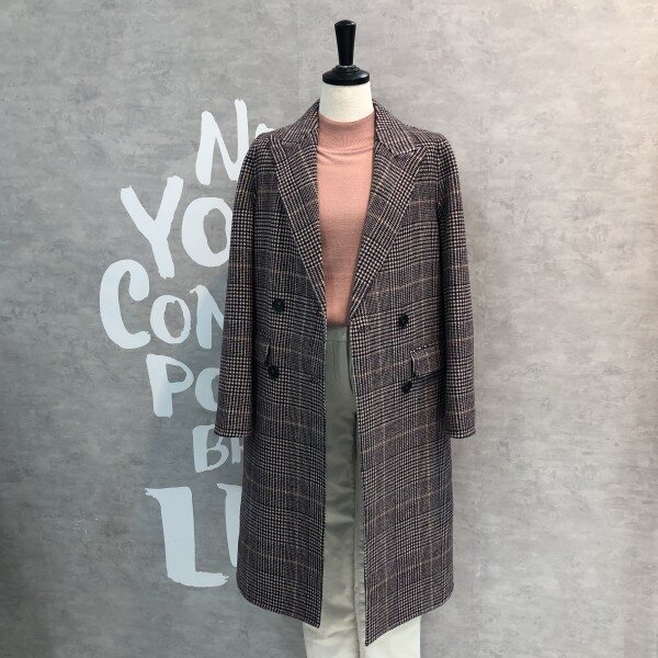 글렌체크 패턴이 클래식하고 멋스러운 핸드메이드 디테일의 더블 버튼 코트입니다