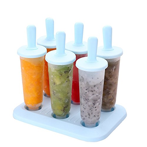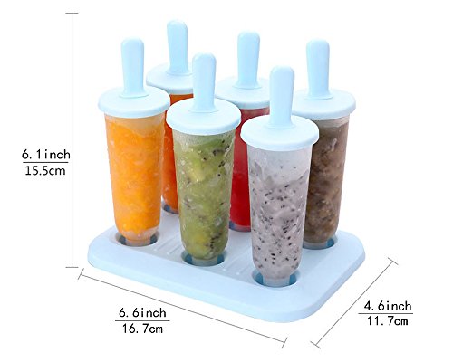 - [Features] Set of six ice pop molds are made especially for freezing juices and other ingredients into perfect freezer pops. You can create your own unique frozen treats using juices, purees, yogurt, gelatin, fruit, ice cream, pudding, jams and jellies. Every frozen treat can be perfectly catered to your family's tastes. It is an excellent gift for your friend or little kid.
