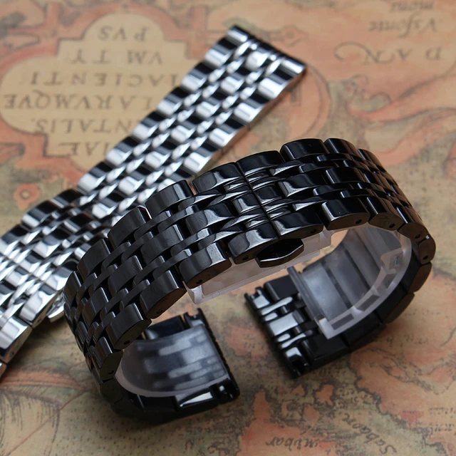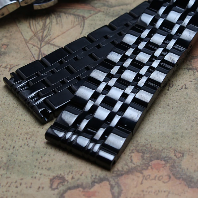 | [해외]14 미리메터 16 미리메터 18 미리메터 20 미리메터 22 미리메터 24 미리메터 블랙 스테인레스 스틸 손목 금속 스트랩 스트레이트 엔드 팔찌 광택 butterfly 버클 뜨거운 |
