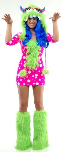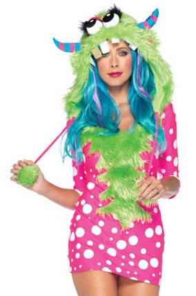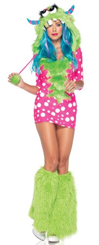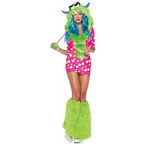 -. Title : Leg Avenue Women's 2 Piece Melody Monster Dotted Dress with Furry Monster Hood