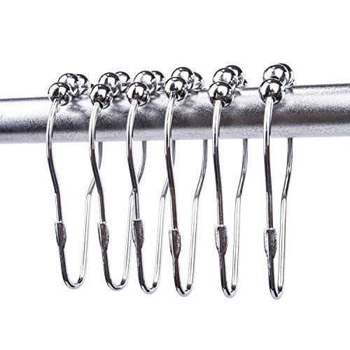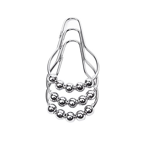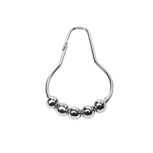 Set of 12 Shower Curtain Rings Hooks with Balls Stainless Steel for Bathroom Rustproof Polished Chrome