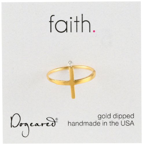 - Title : Dogeared Gold Plated Sterling Silver Faith Large Sideways Cross Ring, Size 6