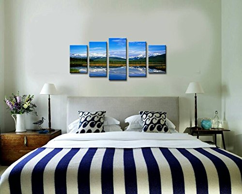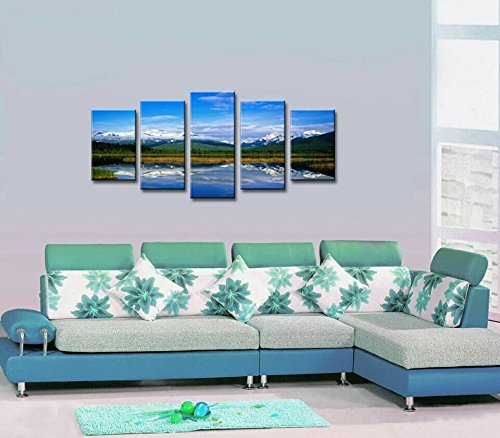 - Title : Youkuart-9188,canvas Print for Home Decoration,framed,stretched - 5 Panels Mountains Green Lake and Blue Sky Painting Wall Art Picture Print on Canvas- High Definition Modern Home Decor