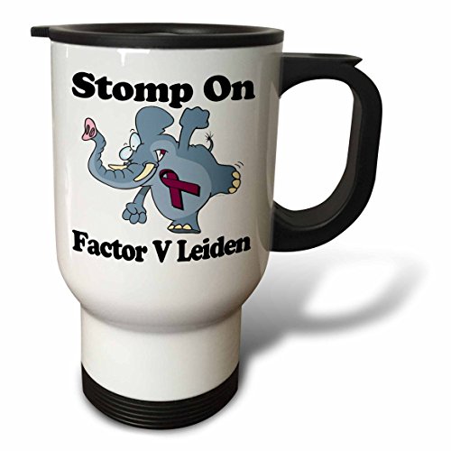 3dRose tm_114543_1 Elephant Stomp On Factor V Leiden Awareness Ribbon Cause Design Travel Mug, 14 oz, Stainless Steel, White