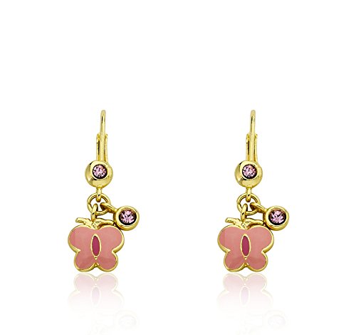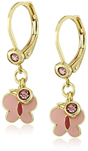 Little Miss Twin Stars Girls' "Charming Treats" 14k Gold-Plated Pink Enamel Leverback with Crystal Dangle Drop Earrings