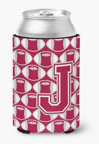 Caroline's Treasures CJ1065-JCC Letter J Football Crimson, grey and white Can or Bottle Hugger, Multicolor