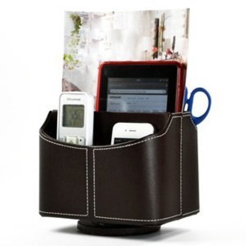 Cosmos ® PU Leather 360 Degrees Rotatable Remote control/controller TV Guide/mail/CD organizer/caddy/holder,Free Cosmos Cable Tie - Brown