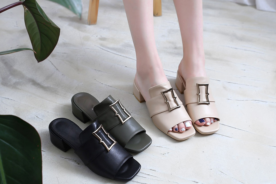 세련되면서도 고급스러운 느낌이 매력적인 뮬 슬리퍼 입니다