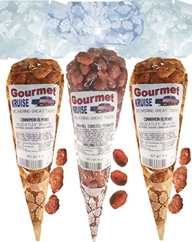 -. Title : Almonds (2) Cinnamon Roasted (1) Caramel Toasted Peanuts (NET WT 18 OZ) Gourmet Kruise Signature Gift Bags