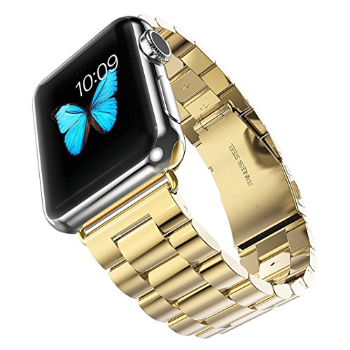 -. Feature : PERFECT FIT - The iwatch band fit for Apple Watch/Apple Watch Sport/Apple Watch Edition (38mm Only). Personalize your Apple Watch with this refined strap compared to Apple original band, but at much less P.R.Ice. / HIGH QUALITY STRAP - The metal watchband is made of Premium Stainless Steel, compression molding, fine workmanship, sturdy and durable, It is a perfect companion mixed with fashion, nobility, elegance for Apple Watch & Sport & Edition (38mm). / EXQUISITE CRAFTSMANSHIP - High-tech surface finish watch strap, after 4 precise polishing processes, the surface texture feels exquisite, with charming luster. All mesh bracelet passed pulling force test, professionally made and constructed, quality assured, more soft and comfortable. / FOLD-OVER CLASP - Fold-over clasp with unique button, The metal clasp firmly closed, prevent loosen automatically, safe and beautiful, and very easy to adjust to a range of sizes to suit your wrist. / ERGONOMIC & SECURE - Durable band comes with Apple Watch lugs on both ends, which locks onto your Apple Watch band interface precisely and securely. Easy and direct installation and removal.