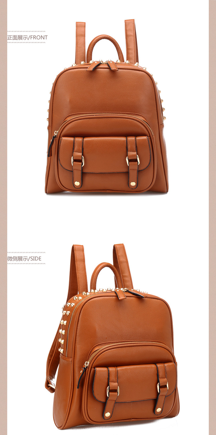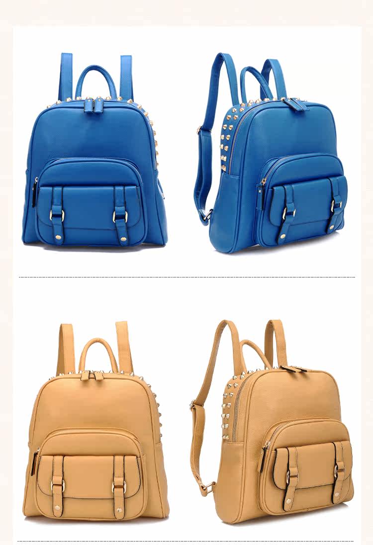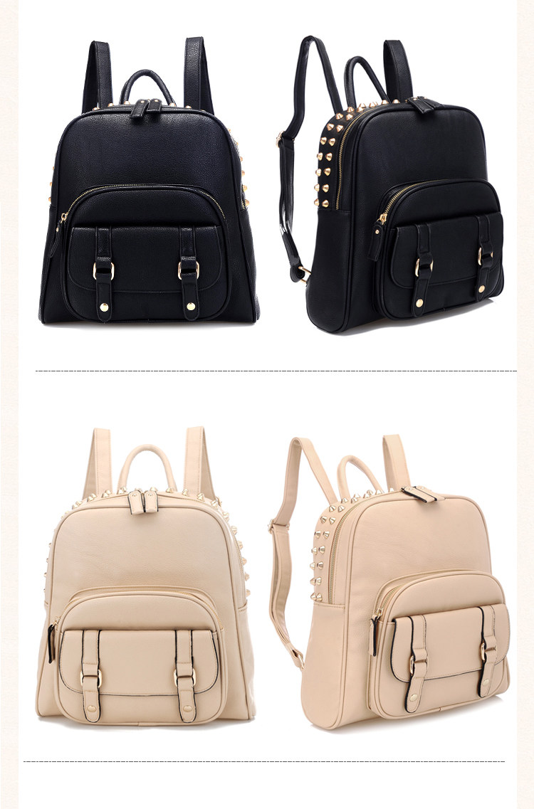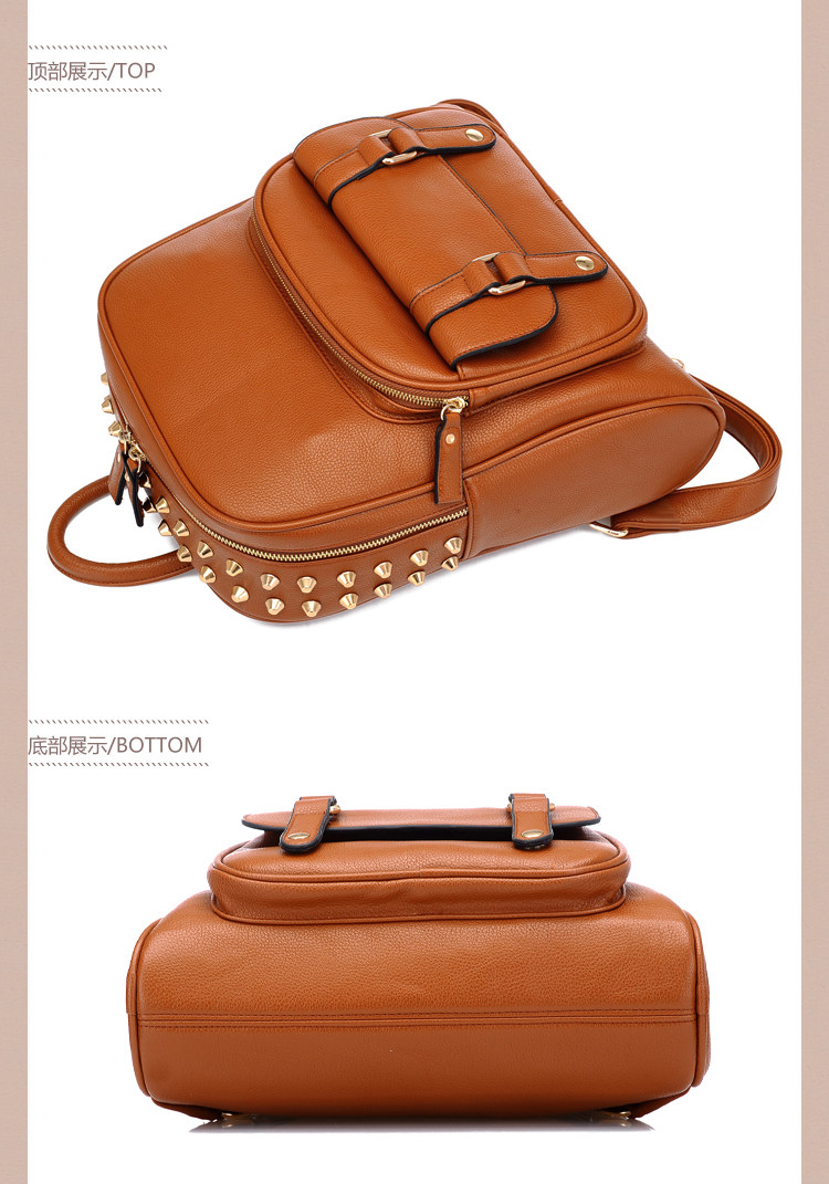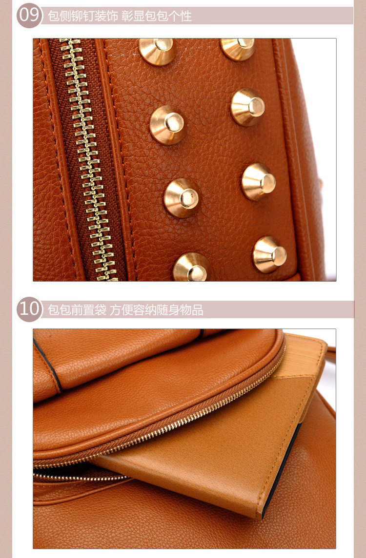 韩版铆钉潮书包复古学院风派休闲。内部1个拉链袋,2个置物袋