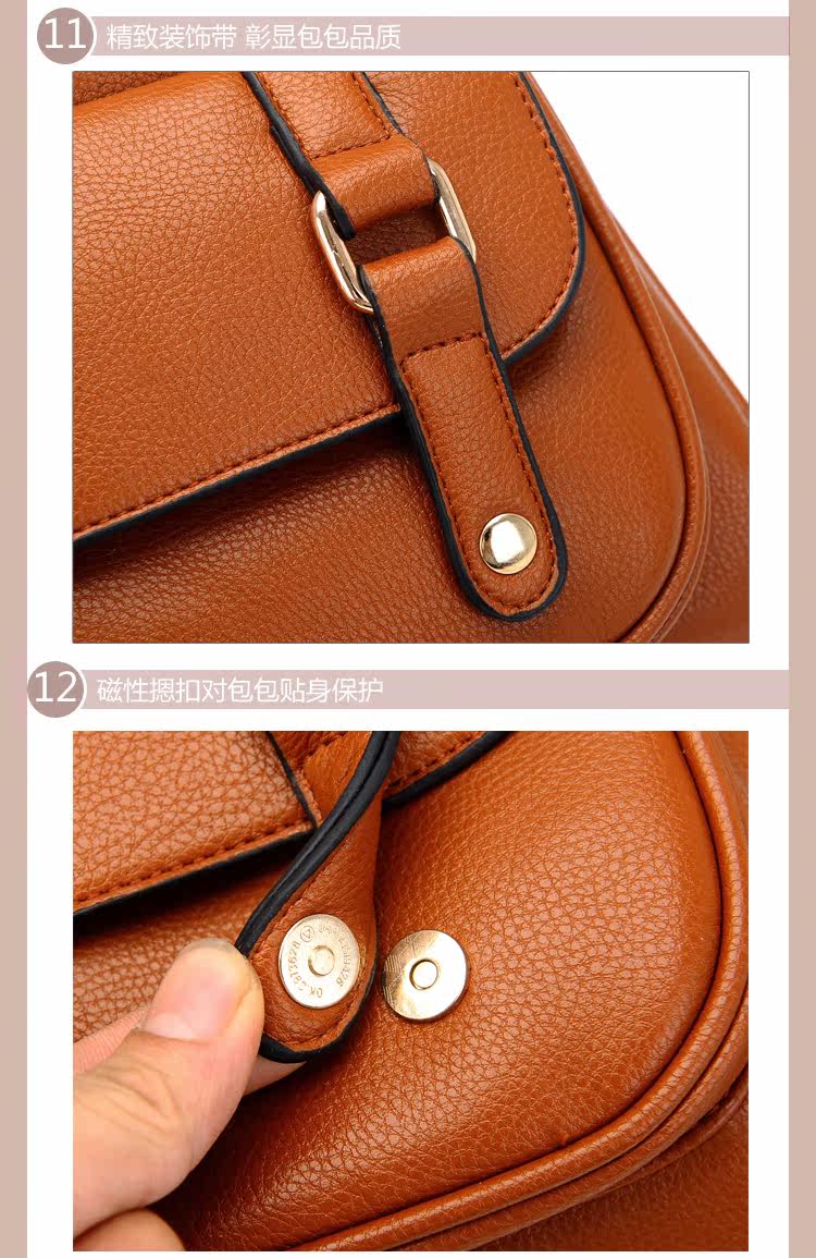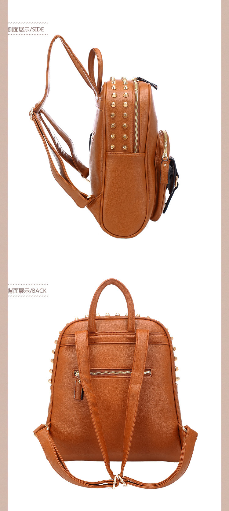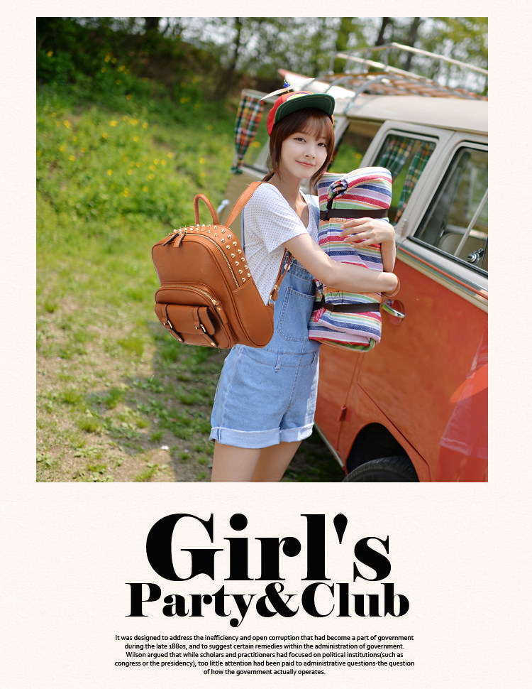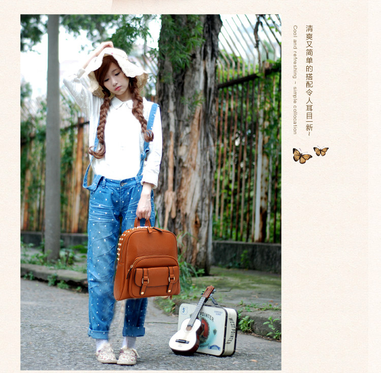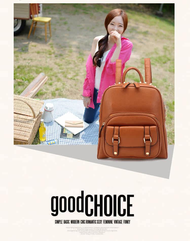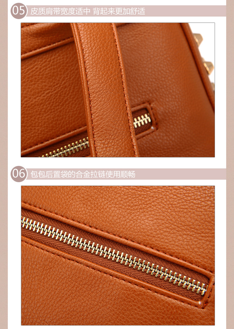 韩版铆钉潮书包复古学院风派休闲。内部1个拉链袋,2个置物袋