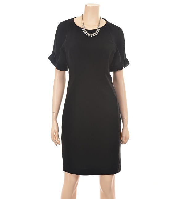 renoma ladies, 미니멀한 실루엣에 실크 케이프 소매 배색을 가미해 모던한 감각의 원피스입니다