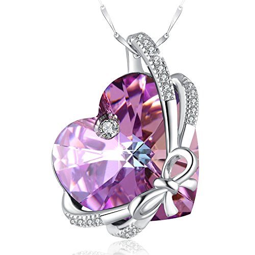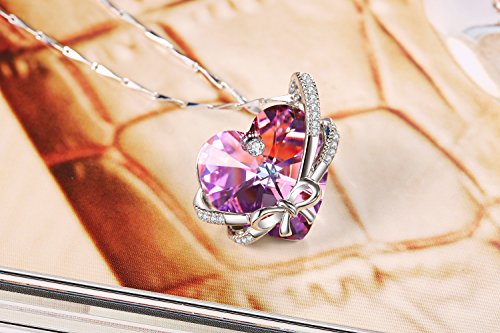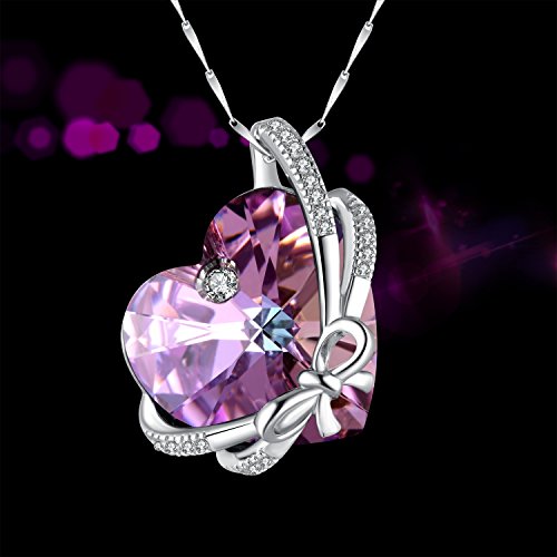 ♥Symbol of Love♥: Blessed Love Bowknot Heart Design, with Swarovski Classical Purple Crystal, Symbol of Evergreen Love to Mothers and Lovers.