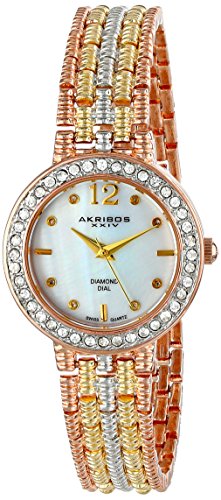 -. Title : Akribos XXIV Women's AK757TRI Lady Multi-Tone Mother-of-Pearl Bracelet Watch