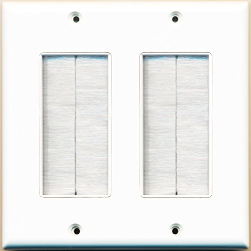 RiteAV - Dual Gang Wall Plate with Brush Bristles - White