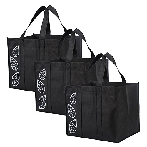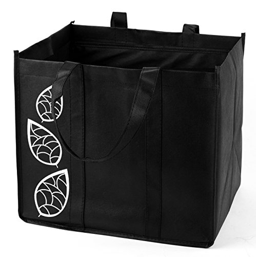 Bekith 5 Piece Large Collapsible Shopping Bags Set, Black Reusable Reinforced Grocery Tote Bag