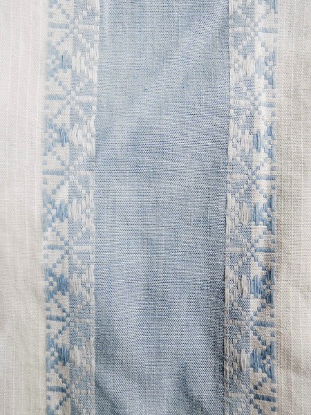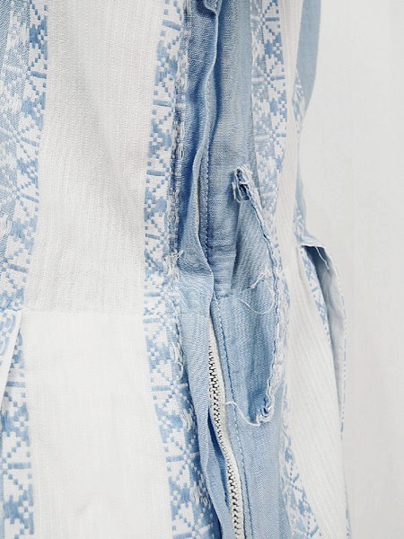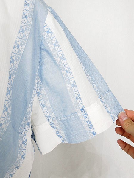 Ladies ブランド- カラー白・水色 メール便不可 コンディション★★★ 素材- 表記サイズ記載なし スタッフコメントタグ、裏地なし。若干のスケ感あり。全体に糸引きがあります。ベルトループあり(付属ベルト等はありません) 実寸サイズ 着丈 104 cm 身幅 50 cm 肩幅 41 cm 袖丈 32 cm ウエスト 34 インチ( 86 cm) ※ウエスト・ヒップ以外は平置き採寸