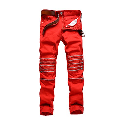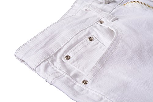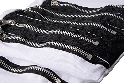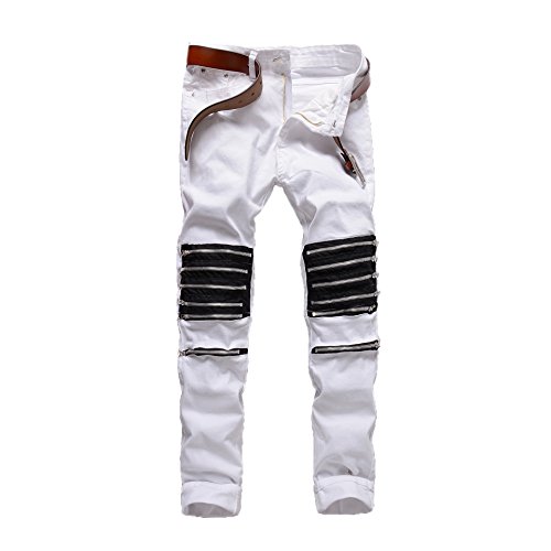 DAVID.ANN Men's Straight Fit Destroyed Zippers Skinny Jeans,White,32