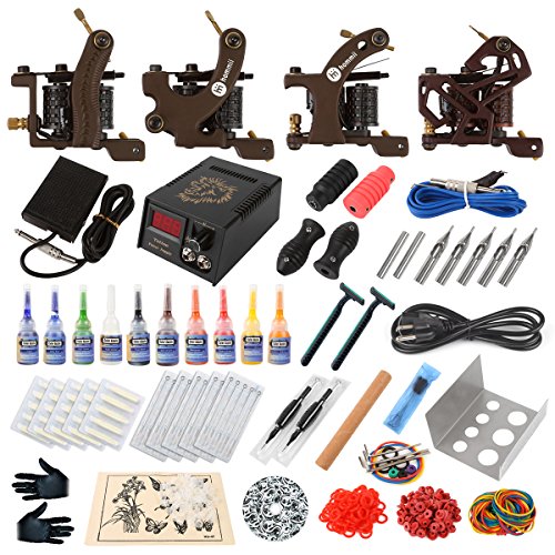 -. Feature : Four fashion unique design tattoo machines, two for liner and two for shader / Includes ALL Supplies - Needles, Power Supple, Inks, Ink Cups, Grips, Gloves, Directions, etc.. for tattoo artist / 1 top quality professional tattoo power supply with foot pedal and clip cord / Ten bottle most popular inks,vegan friendly, smooth, vibrant, consistent, trusted / Free CD with a instruction to teach how to tattoo
