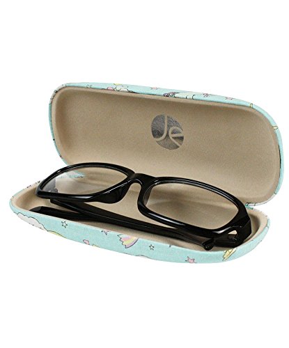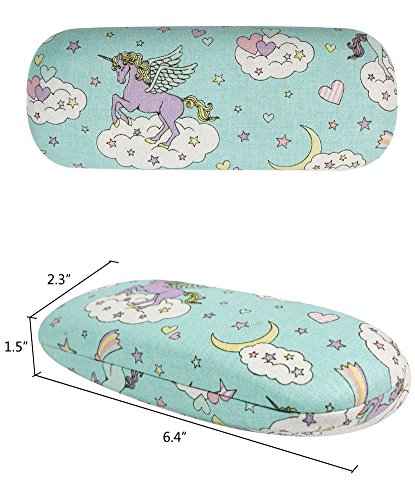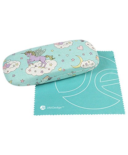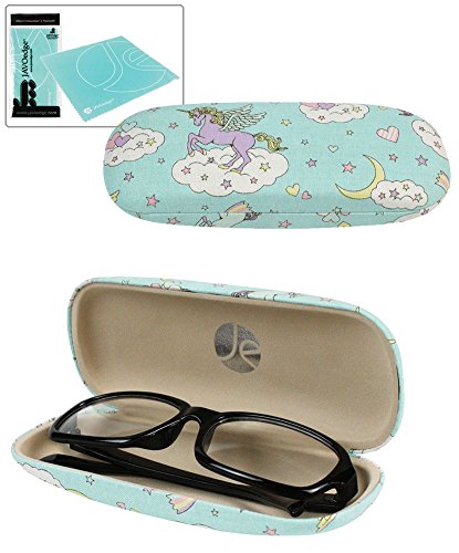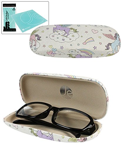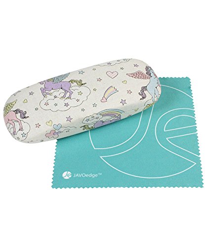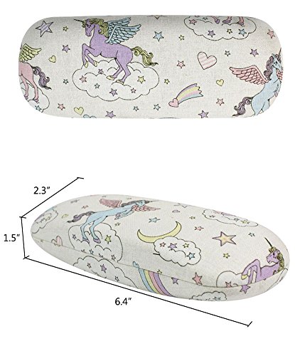 (JAVOedge)/Accessories/Eyewear/DIRECT FROM USA/JAVOedge Unicorn and Rainbow Pattern Wrapped Fabric Wrapped Hard Clamshell Eyeglass Case with B...