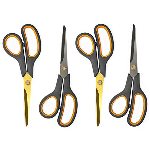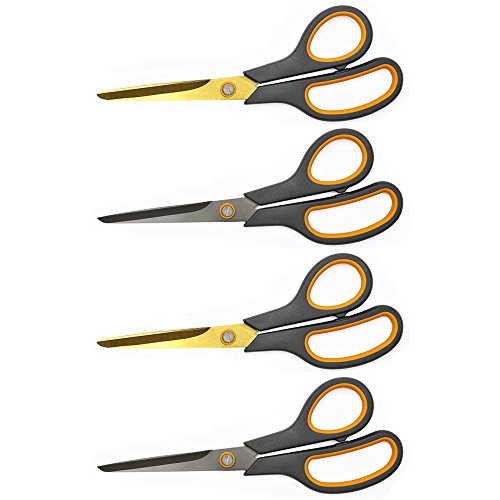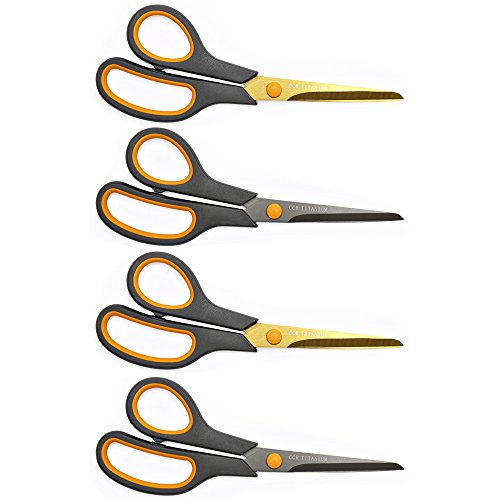 CCR Scissors 8 Inch Soft Comfort-Grip Handles Sharp Titanium Blades, 4-Pack